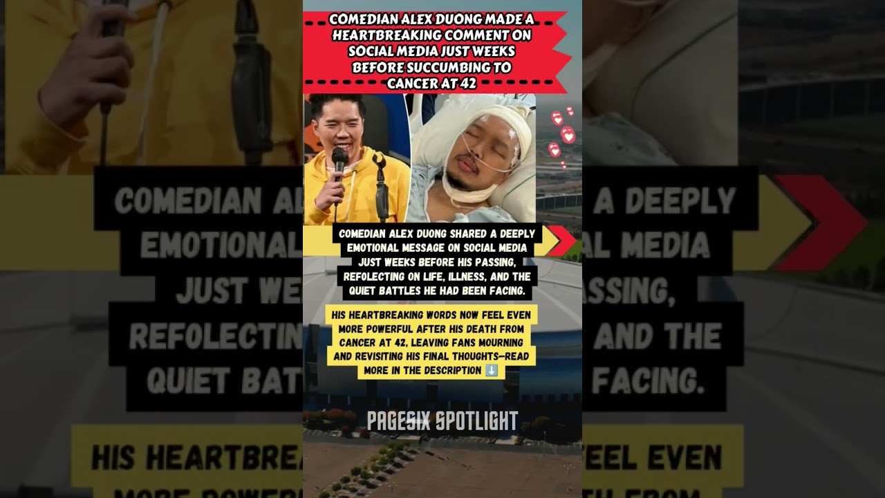 Comedian Alex Duong’s heartbreaking comment on social media just weeks before succumbing to cancer at 42 revealed a man full of hope, courage, and love. His battle with a rare and aggressive cancer touched many lives and underscored the importance of resilience in the face of adversity. As fans and friends mourn his passing, they also celebrate the legacy of a talented comedian who never lost faith.