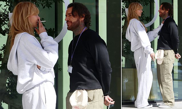 The couple was seen sharing a cigarette while enjoying coffee at a trendy Soho café, showcasing undeniable chemistry and comfort with one another. Olivia, 34, appeared to be taking a brief pause from her busy filming schedule, her hair clipped back casually as she sported a laid-back tracksuit paired with classic Vans sneakers. Pete, 37, complemented her style with his own casual look, including a pair of checked Vans shoes, subtly matching Olivia’s footwear choice.