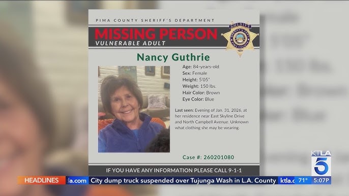 Chilling Update in Nancy Guthrie Case — Woman’s Body Found in Arizona Canal Identified by Authorities
